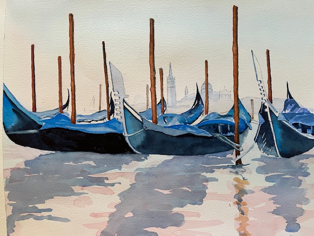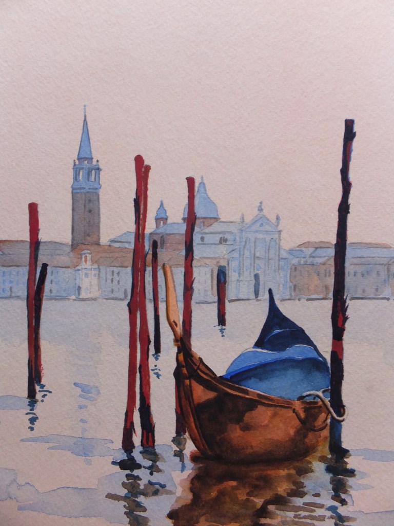 As I have been away for a while I thought I would just do a compendium of more recent paintings, just to catch up, and start with one called Gondolas. Always a favourite subject, and this view with San Giorgio Maggiore in the background I have painted and sold several times. This shot is completely different to any that I have done before