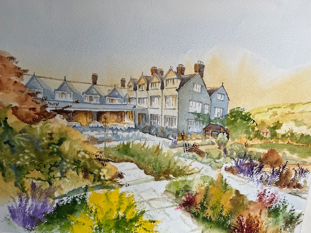 I have been getting commissions which is always nice. A more recent one shows a country house hotel called Gravetye Manor, which I have painted before. This is a different view in evening light commissioned by a guest who had a meaningful stay there