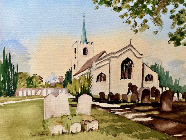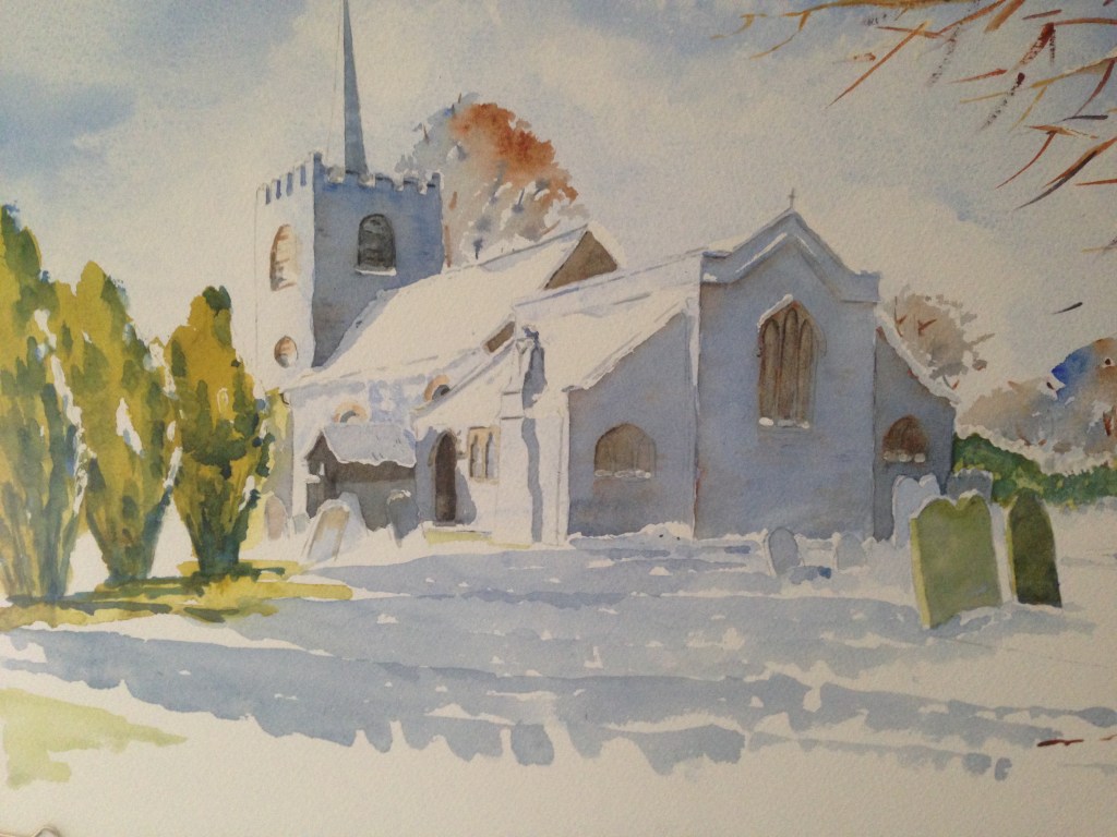 I have painted this church on a couple of occasions over the years. One painting I did in the snow which was well received. I was especially thrilled at the end of last year, for that particular painting to be printed as a greeting card by the church and sent to everyone in the parish, setting out the times of services over the Christmas period. I will see if I still have an image