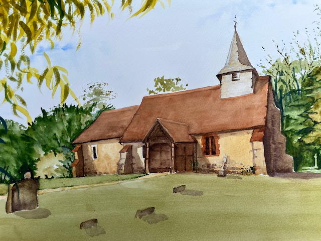 I have been commissioned to paint this church, the village church of Pyrford in Surrey. Ancient yet still in use as a parish church, it is set in a tranquil spot, and is quite charming. The lady who commissioned it no longer lives in the area. Her parents are buried here, so a meaningful place. I always feel very priviliged being asked to paint places that are so important in people’s lives. I am working on it at the moment and will post the result