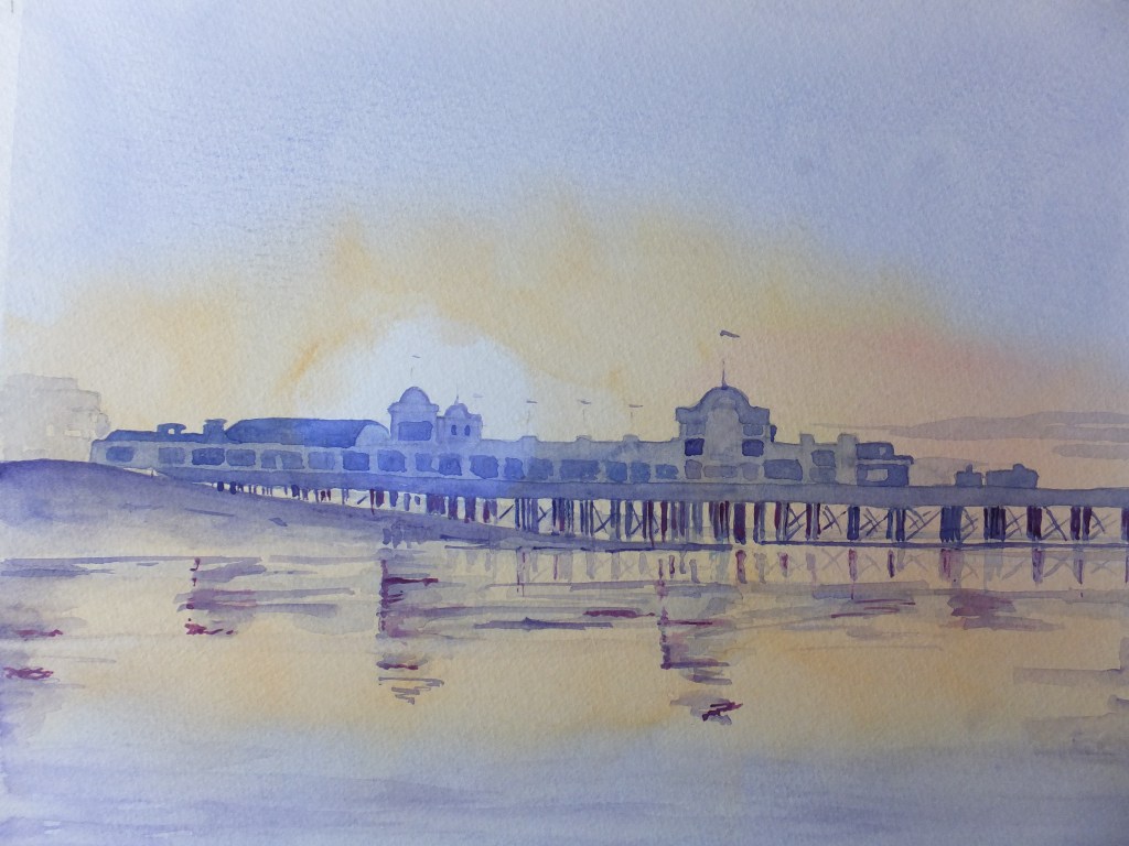 I mixed Cobalt and Phthalo Blue for the sky and for the water. I used various reddish colours for the buildings ranging from Burnt Sienna to Orange to Cadmium Red. Blue works well for the shadows on the buildings. I kept the buildings including the mosque hazy and soft.The boats I painted in sharper detail.I used watercolour pencils for the underdrawing and then went over the whole thing with clean water and let the picture dry hard. The result was a soft outline ready to paint but avoiding pencil lines. The result looks as though I have painted with a brush, which I am not good at.