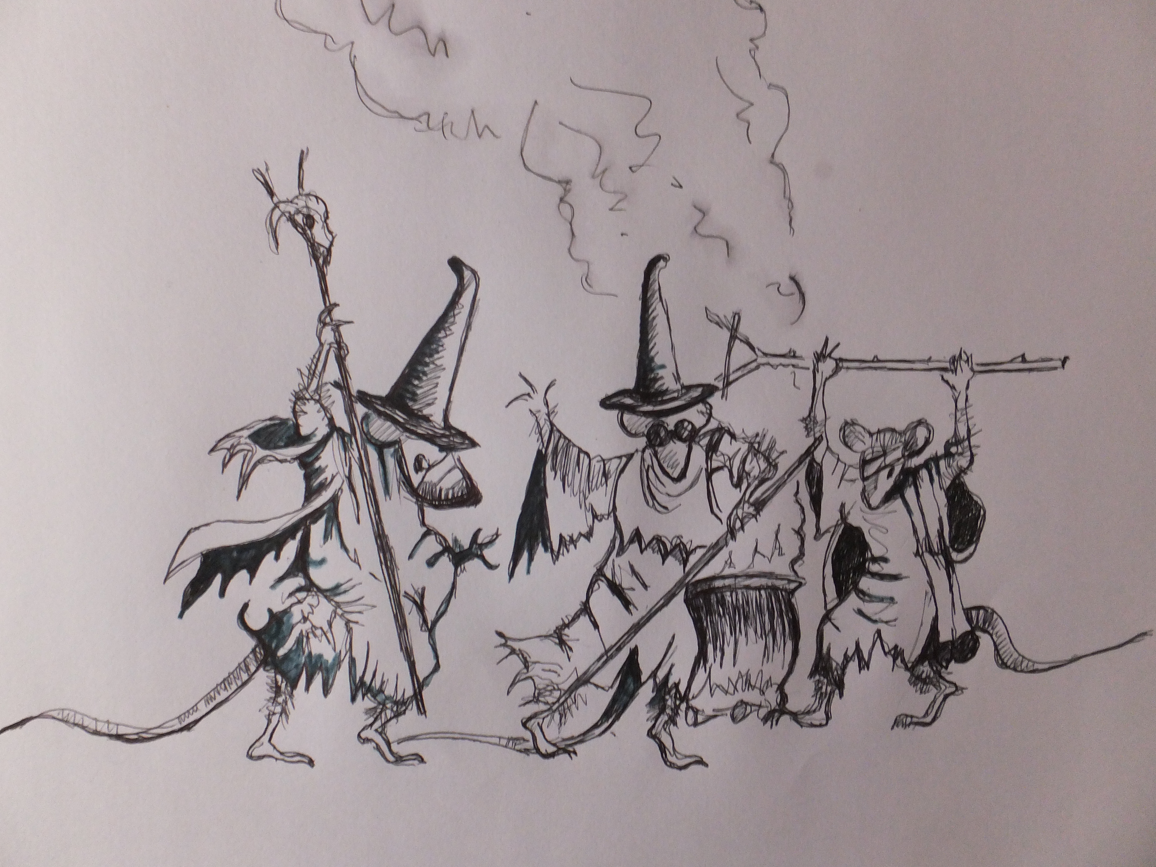 As you can see the three witch mice are in full incantation. They are wearing their masks or their ‘blinds’, and they are looking convincing. If they are not convincing, they certainly look frightening. I wonder if we shall see them in print. I believe there is interest from two publishers, but of course it will depend on the deal. We shall have to see