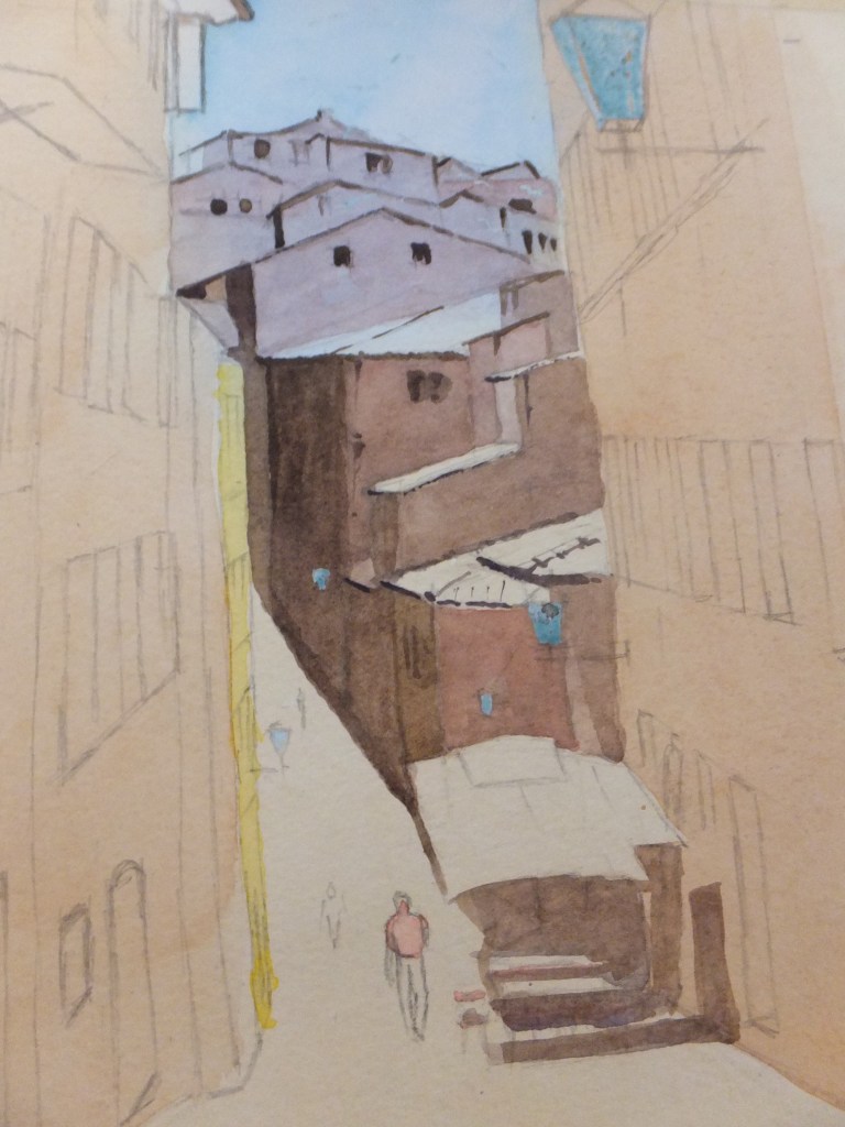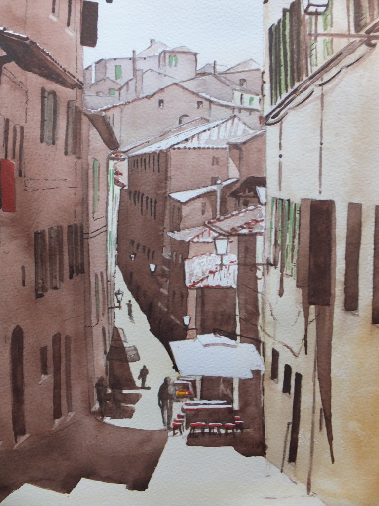 Despite what I said about getting away from detail for a change, I don’t want meaningless shapes either, and unlike photographers, artists can choose what goes into a composition, which gives us an advantage, so I might be able to get away from that rather shapeless foreground.