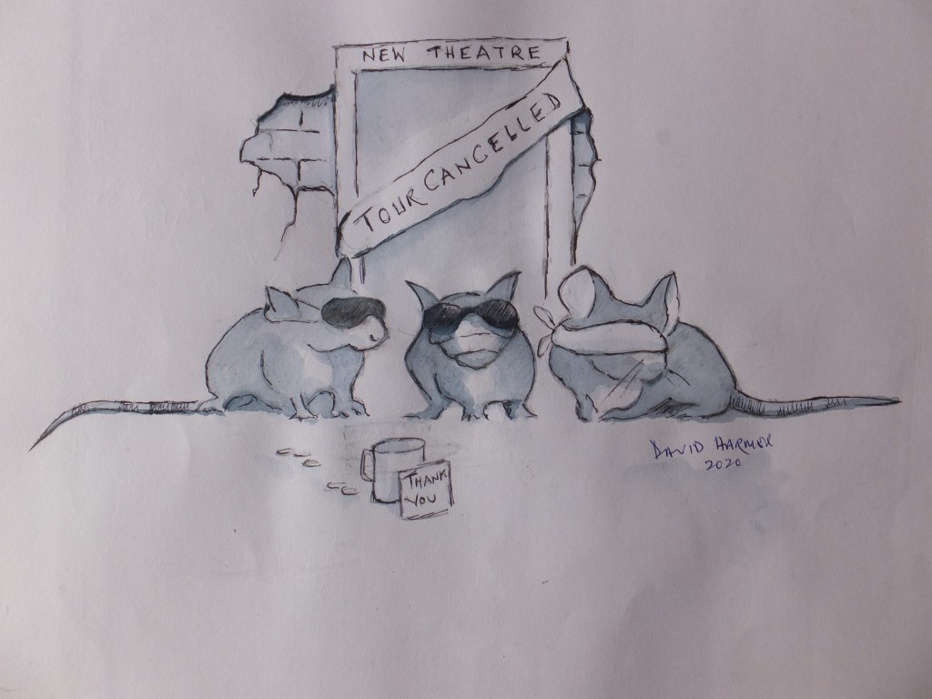 I was pleased to be asked to provide illustrations for this delightful book, which was recently published. The author, John Griffiths, a well-known stage actor, was playing in the second run of the stage play Three Blind Mice. The first year’s tour had been a great success, and the second tour was well underway. On that fateful night, the audience arrived with their tickets and so did the cast, expecting to perform. They all had to be told that there would be no performance that night or any night. Theatres were closed, the tour was cancelled. Lockdown 1 had begun