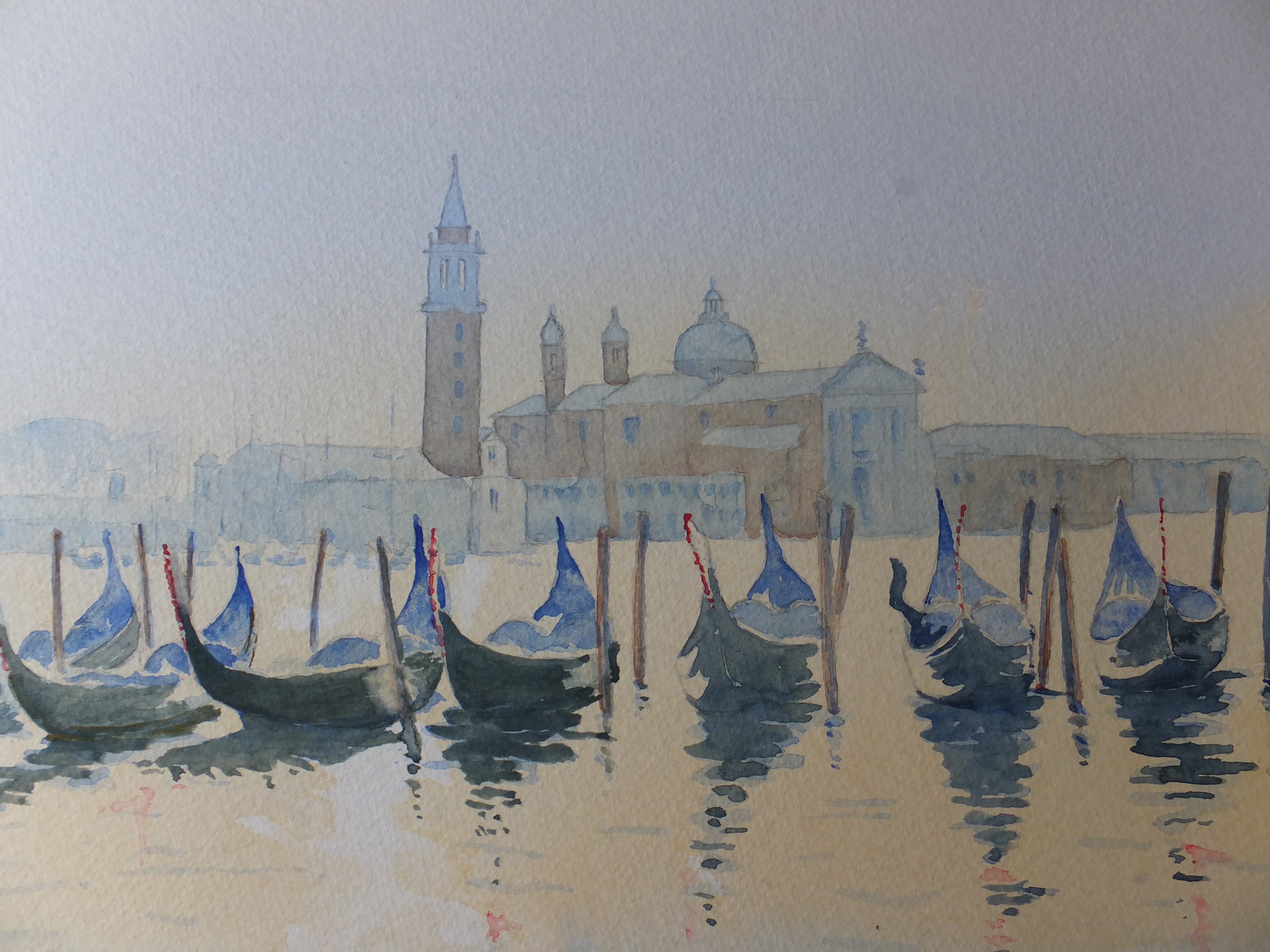 As I have been away for a while I thought I would just do a compendium of more recent paintings, just to catch up, and start with one called Gondolas. Always a favourite subject, and this view with San Giorgio Maggiore in the background I have painted and sold several times. This shot is completely different to any that I have done before